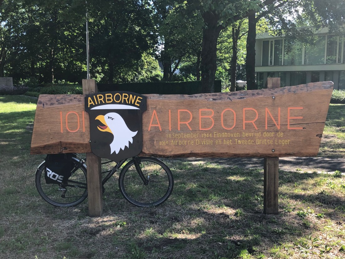 We travelled North through Eindhoven, where I had expected we would be held up passing through the city during the morning rush-hour. Instead, the route followed well-maintained cycle paths through parkland, and suburbs to the East of the city centre, and most of the commuter cycle traffic was moving briskly South, in the opposite direction, out of the City. On the northern outskirts, we saw a memorial to the American 101st Airborne, who had landed in this area on 17 September 1944.