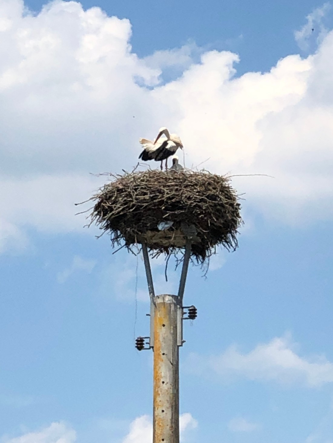 As for the rest of the journey, the four or five moderate climbs were early, and tackled by mid-morning. There then followed by a long grind along generally flat straight roads, occasionally passing through a small town or village, with little to see, and few places to replenish oneself, although two large storks nesting on top of a disused telegraph pole in Deutsch caught the eye.